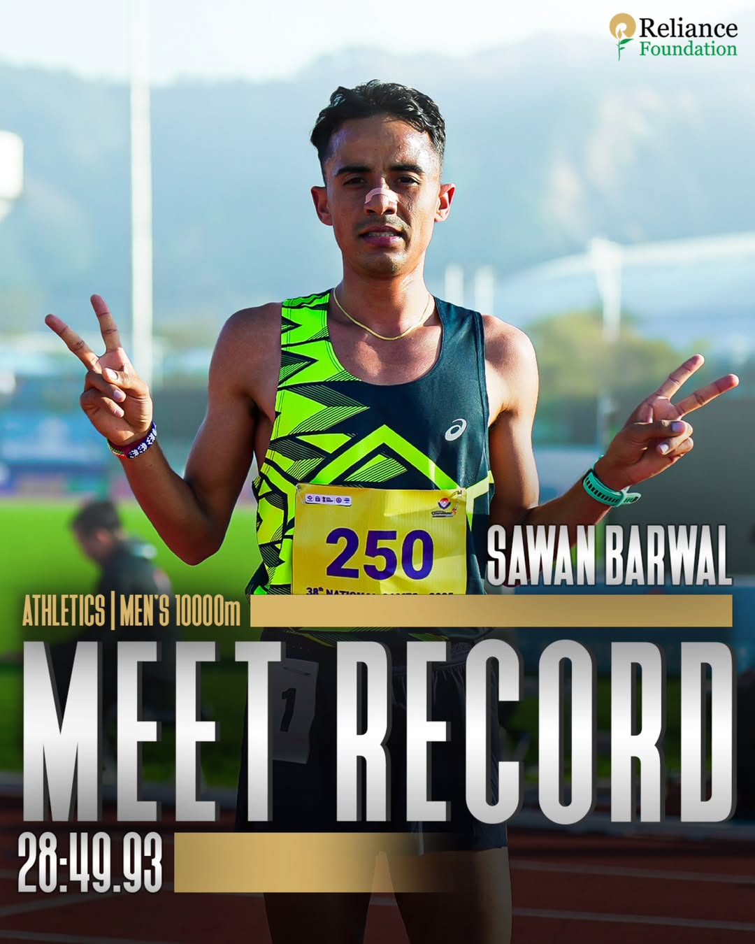 sawan barwal ने राष्ट्रीय खेलों में रचा इतिहास, 5000m और 10,000m दौड़ में बनाए नए राष्ट्रीय रिकॉर्ड